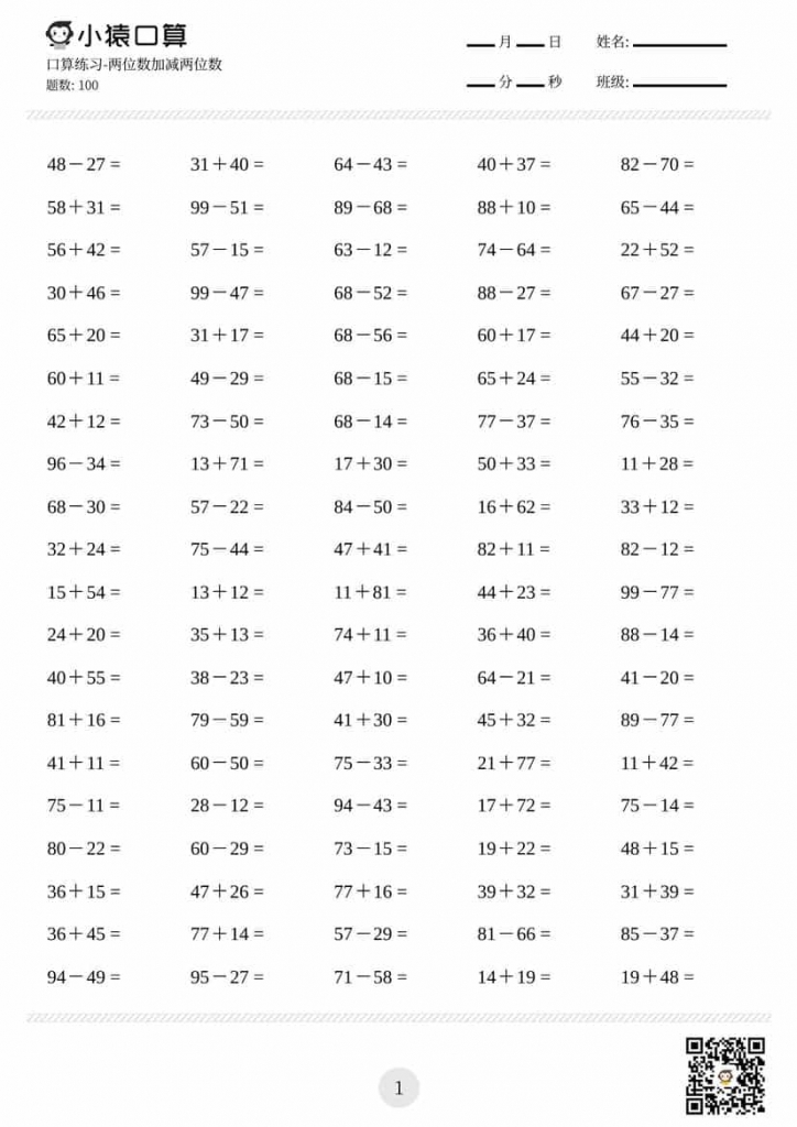 admin 三年级 2024-09-17 三年级数学口算练习题(两位数加减两位数等,共2000题)(21页) 三年级数学口算练习题(两位数加减两位数等,共2000题)(21页) 本站所有资料均来源于在职优秀老师整理,小额收费仅仅是为了给予老师的微薄补贴!小学教辅资料 » 三年级数学口算练习题(两位数加减两位数等,共2000题)(21页)